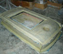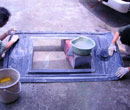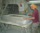 マスター型(FRP雄型)よりFRP雌型を作り、これから複数の製品を型抜きします。雌型にはシリコンゴムを使う場合もあります。 |